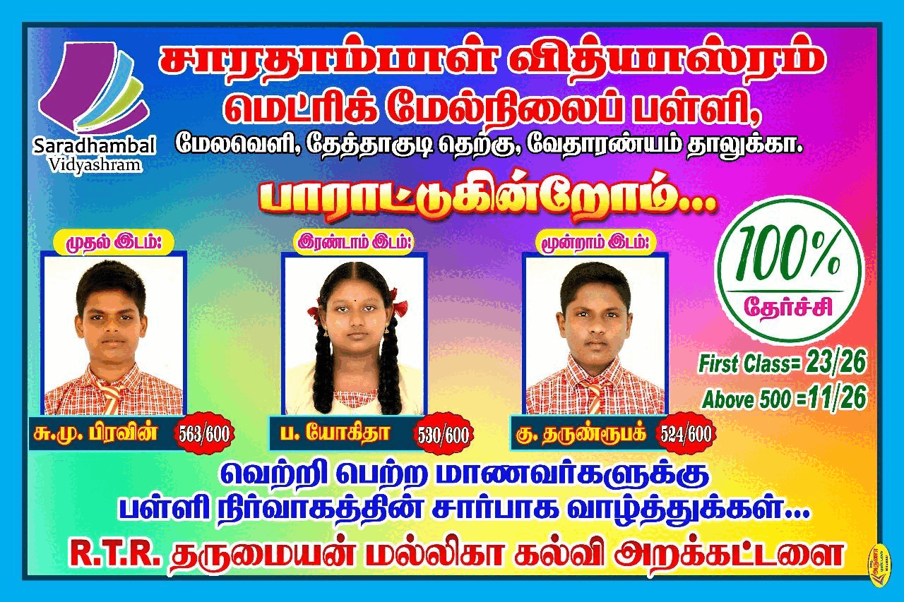 Principal/Head Teacher of Saradhambal Vidyashram Thethakudi South is Mr/Ms V. Kayarizhi